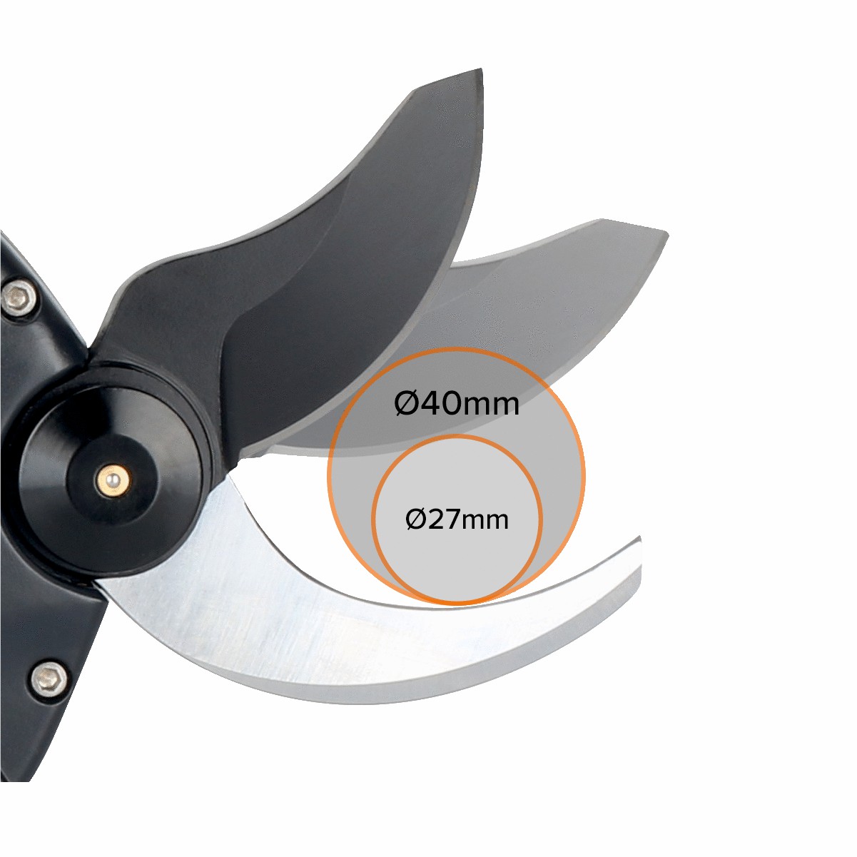 Yüksek kaliteli bıçaklar: Tek parça dövme SK5 çelikten üretilmiş bıçaklar sayesinde 40 mm’ye kadar dal kesiminde mükemmel sonuç verir. Uzun ömürlü ve dayanıklıdır.
