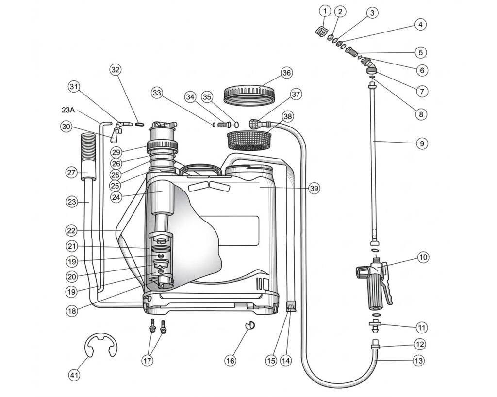 Ergonomik pompa kolu ve ilaç korozyonuna dayanıklı ayarlanabilir askıları kullanıcıya konforlu bir kullanım sunar. Yaklaşık 100–125 cm hortum uzunluğu ve 40–60 cm püskürtme çubuğu sayesinde bitkilere rahat ulaşılır ve dengeli püskürtme yapılabilir.