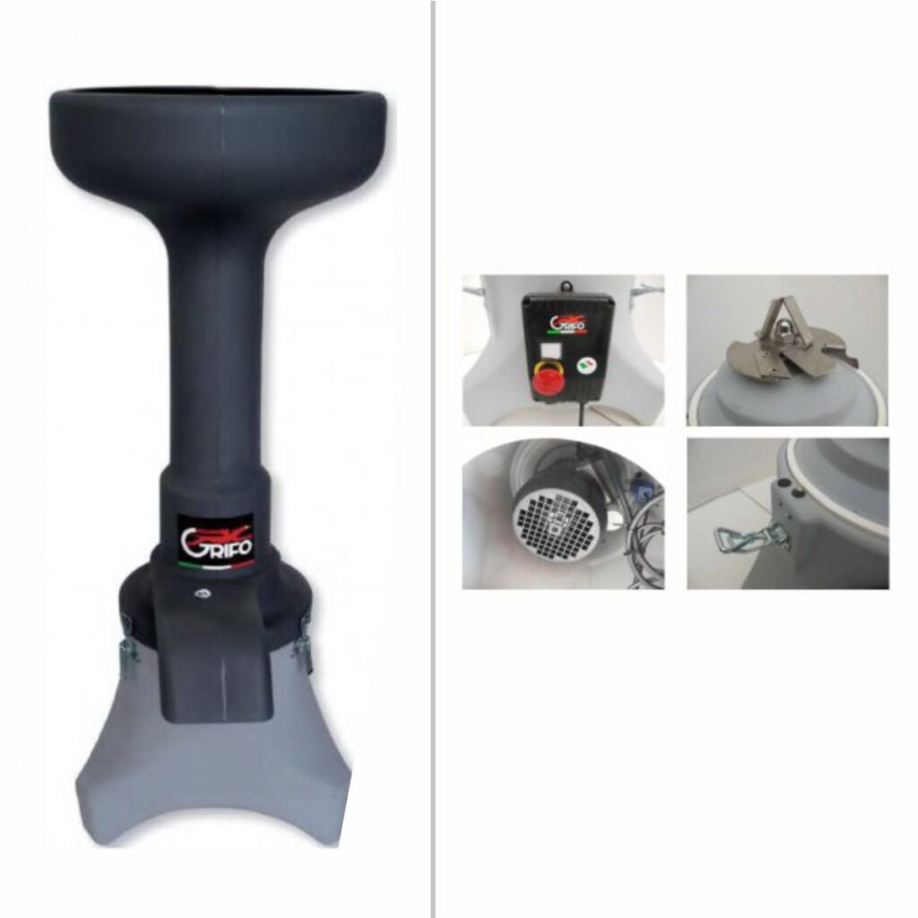 Saatlik 800 - 1000 kg meyve öğütebilen Grifo meyve öğütücü elma, armut vb gibi sert çekirdeği olmayan meyveler için tasarlanmıştır. Özel çift açılı bıçak tasarımı sayesinde kesintisiz meyve beslemeye uygundur. Özel çelik bıçaklar bileme gerektirmeden yüzlerce ton meyve öğütebilir. Çift bıçaklı tasarımı sayesinde meyveyi ezmeden, püre yapmadan fermantasyon ya da preslemeye en uygun küçük parçalar haline getirir.