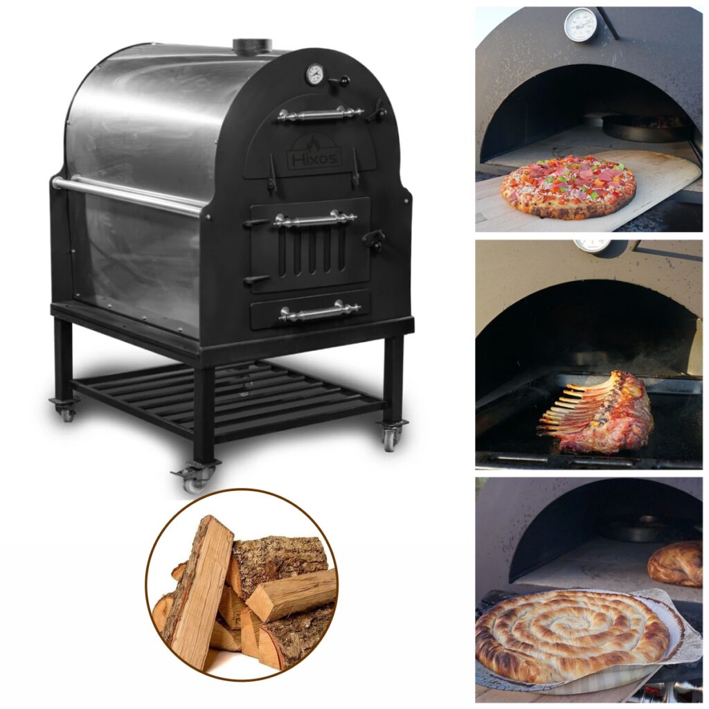 Hixos Small Odunlu, Seyyar, Barbekülü Fırın – Pişirme Ölçüsü: 50×60 cm – HXOS2036