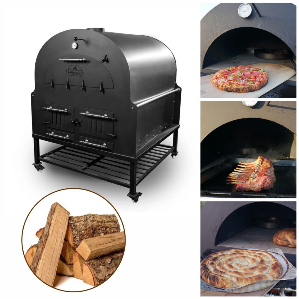 Hixos PRO Odunlu ve Gazlı Seyyar Bahçe Fırını – Pişirme Ölçüsü: 100×96 cm – HXOS2052