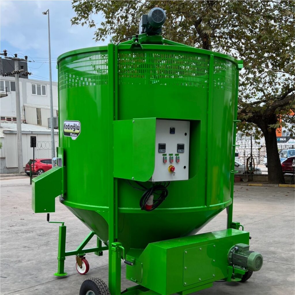 5200E kurutma makinesi ceviz, fındık, badem vb kabuklu yemişleri kurutmak için uygundur. Hassas sıcaklık ve programlanabilir karıştırma süresi ayarları sayesinde pek çok kabuklu yemiş için kullanılabilir. Yükseklik ayarı, yer değişimi için çeki demiri, çuval ve konveyör bant için 2 tahliye çıkışı, numune kontrol gözü gibi ihtiyaç duyulacak detaylar düşünülmüş profesyonel bir kurutma makinesidir. İster mahsülü belli sürelerde karıştırarak ya da hiç karıştırmadan kurutma sağlamak mümkündür. (kurutma süresinin kısalması için tek işlemde en az 1 kez mahsülün tamamının karıştırılması tavsiye edilir.)