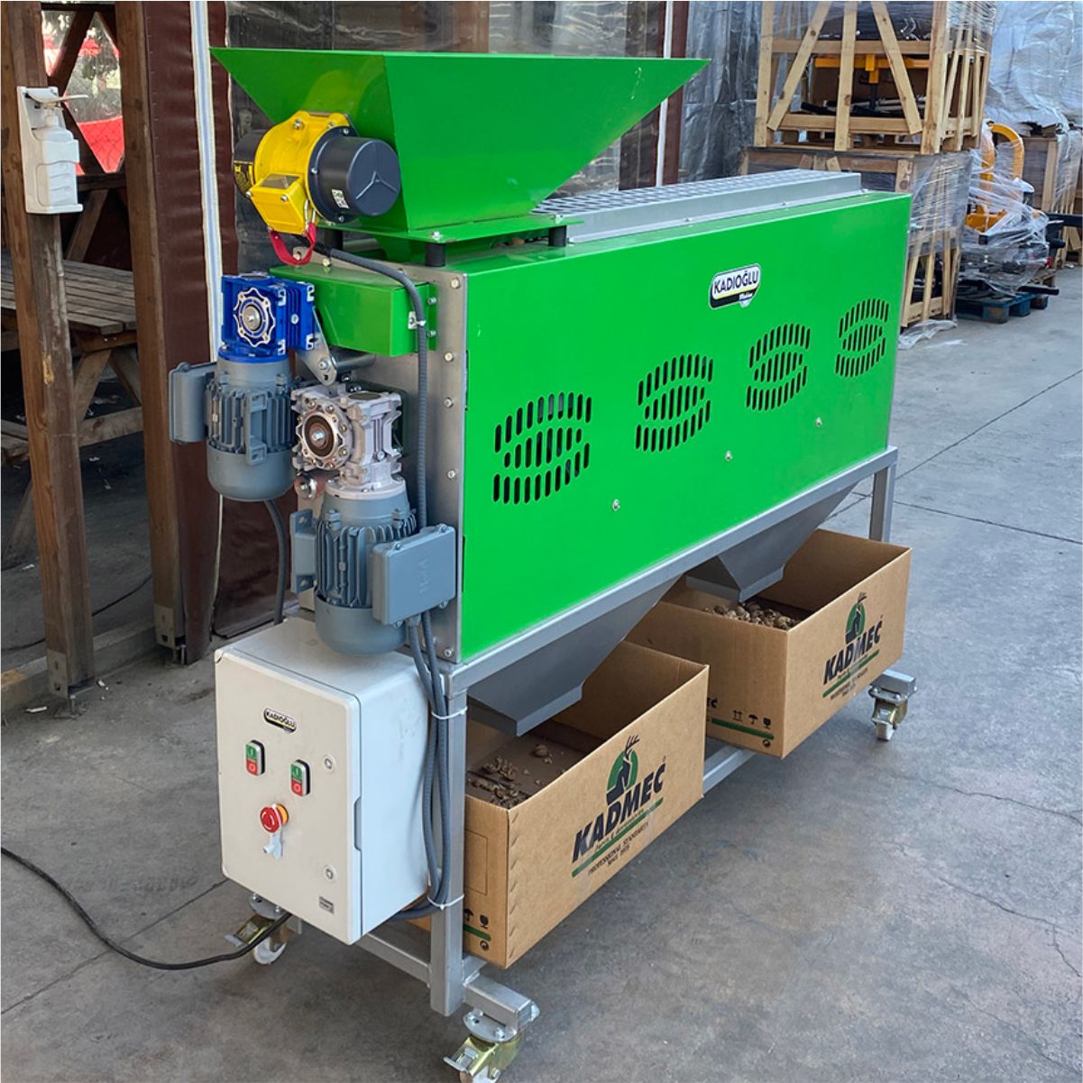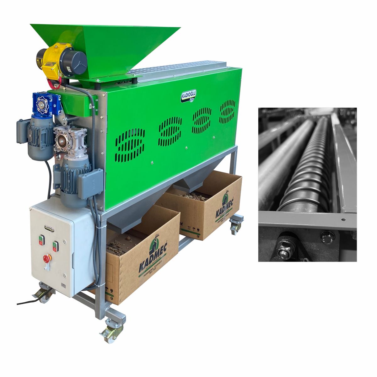 Kadıoğlu CKK200 Ceviz ve Fındık Kırma Makinesi mahsülü kırmadan önce boylarına göre ayırmaya yarayan boylama silindirine sahiptir. Bu sayede her kırıcı hazneye o haznenin maksimum verimle kırabileceği ebatta mahsül düşer ve kırma işlemi gerçekleşir.