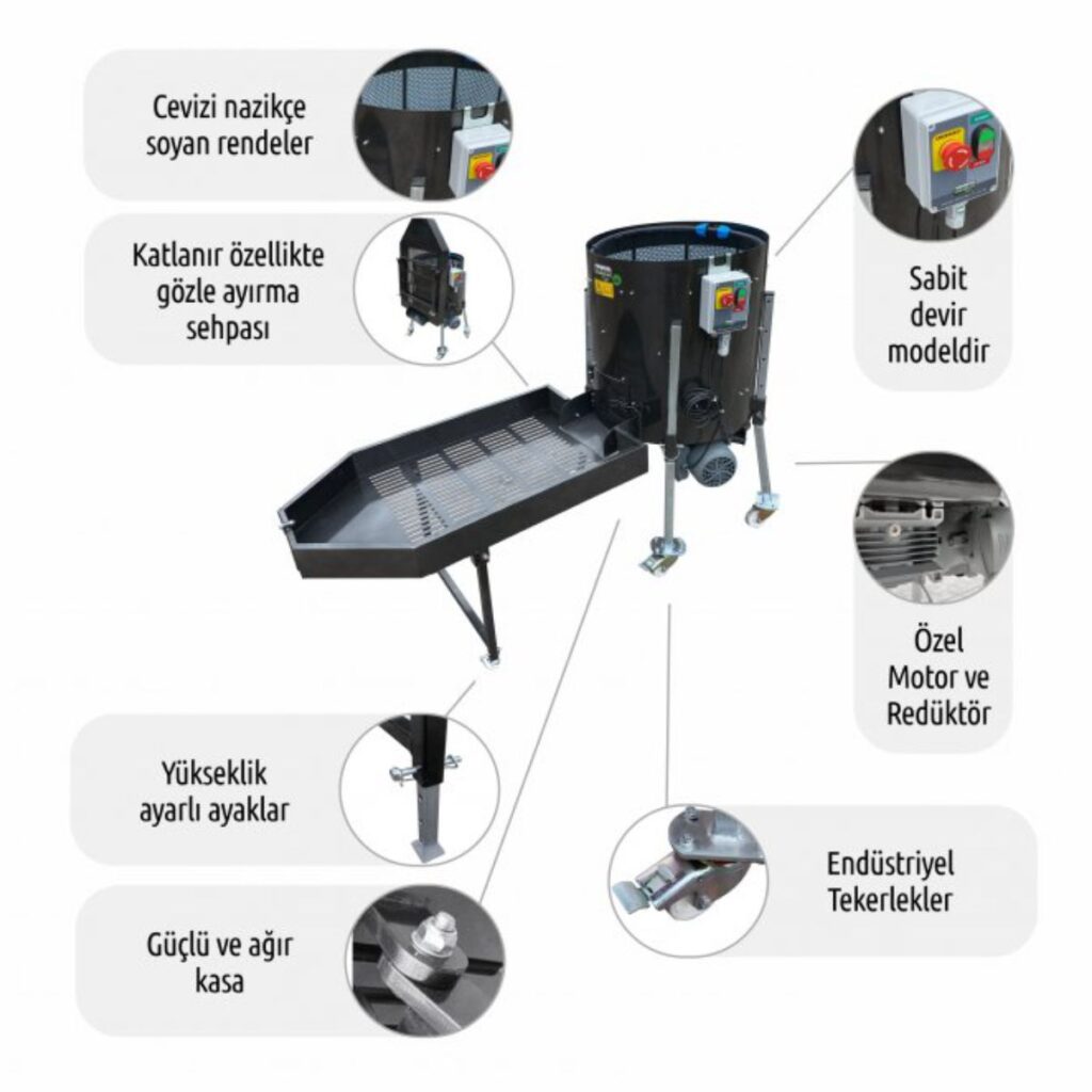 - 7-15 dakikada 100-120 kg Ceviz Soyma Kapasitesi