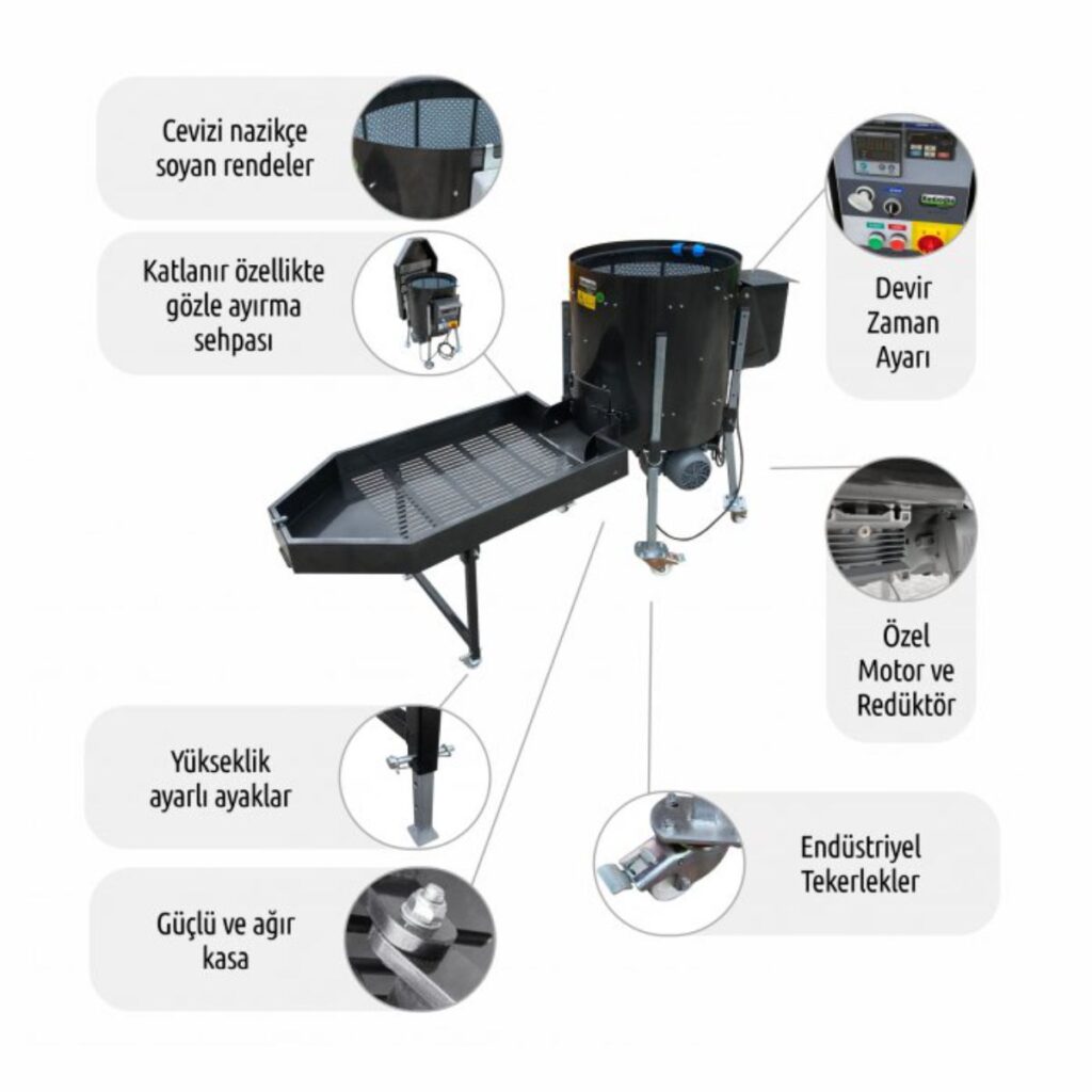 - 5-12 dakikada 100-120 kg Ceviz Soyma Kapasitesi