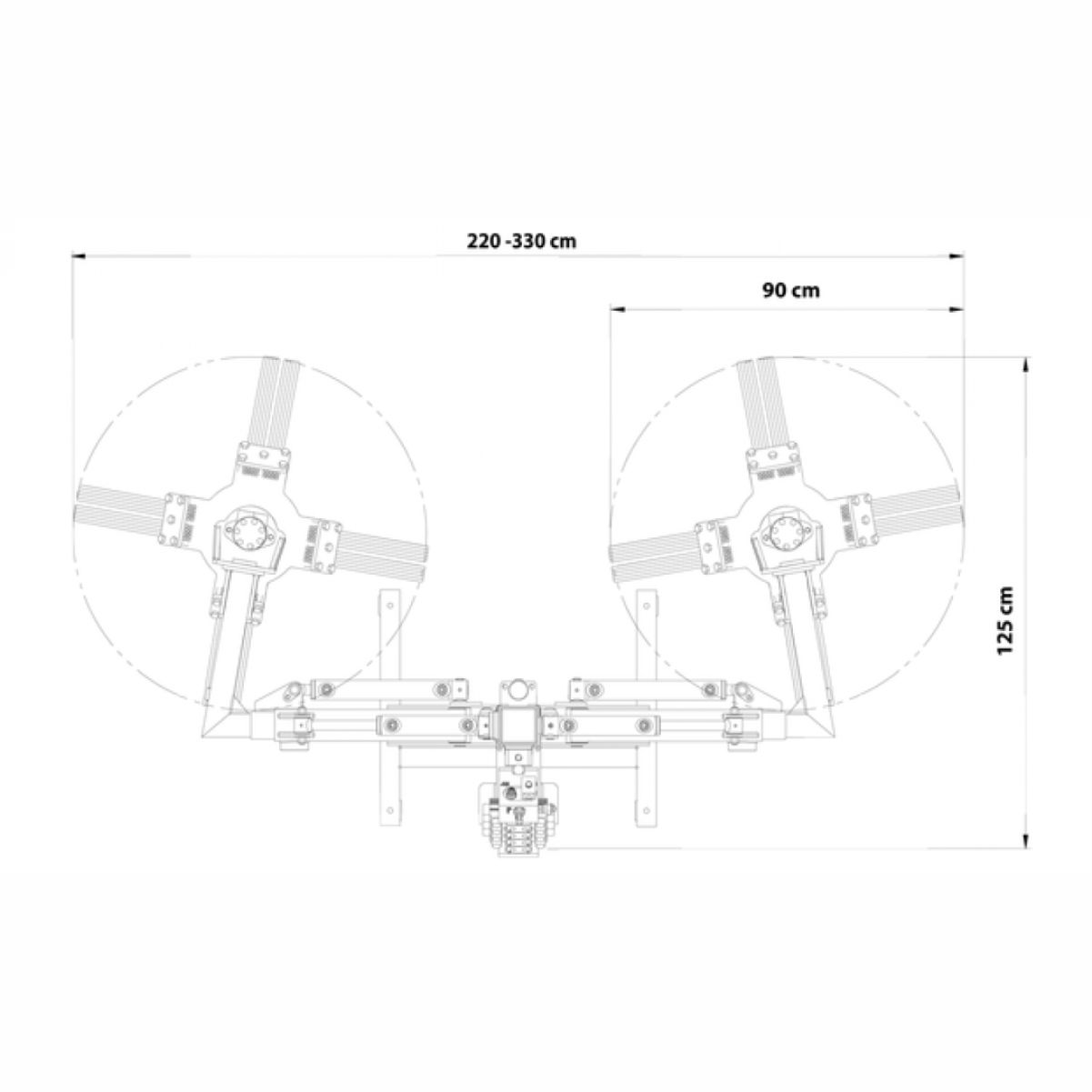 Çalışma bomu uzunluğu traktör orta noktası baz alınarak 220 cm - 330 cm olarak uzayıp kısalabilir ve kumanda kulundan yükseklik, uzunluk ve çalışma açısı gibi tüm ayarları traktörden inmeden yapılabilir.