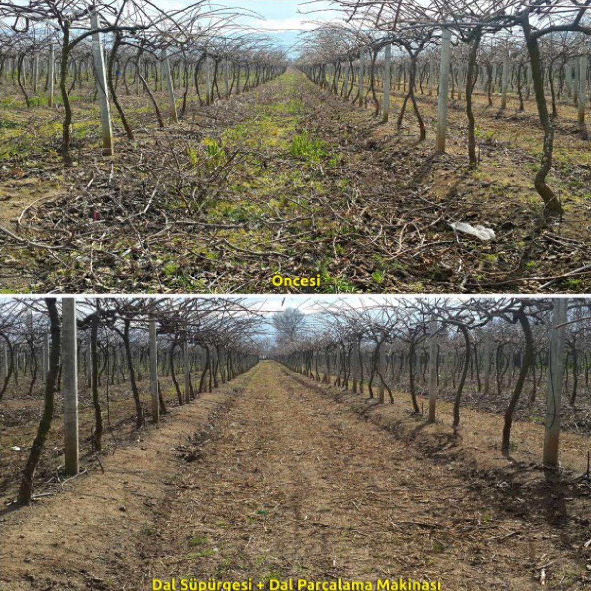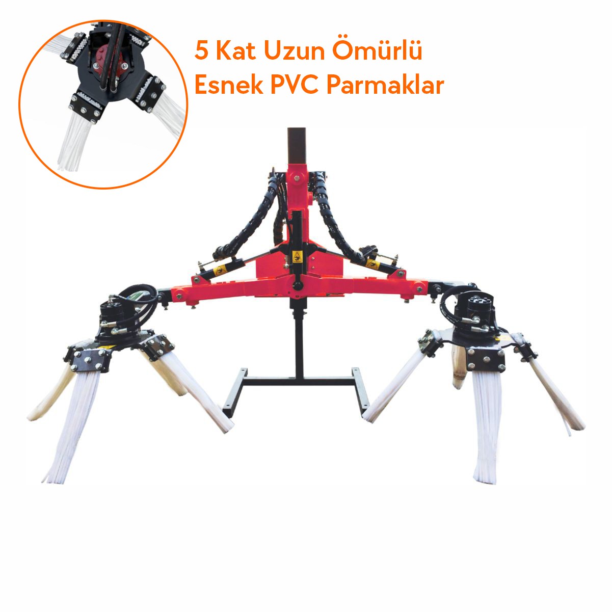 Traktörün önden monte edilen ve traktör hidroliğiyle çalışan dal süpürge makinası Kadıoğlu KDT112, Bağ ve bahçelerdeki budanmış dalları ortaya toplar.