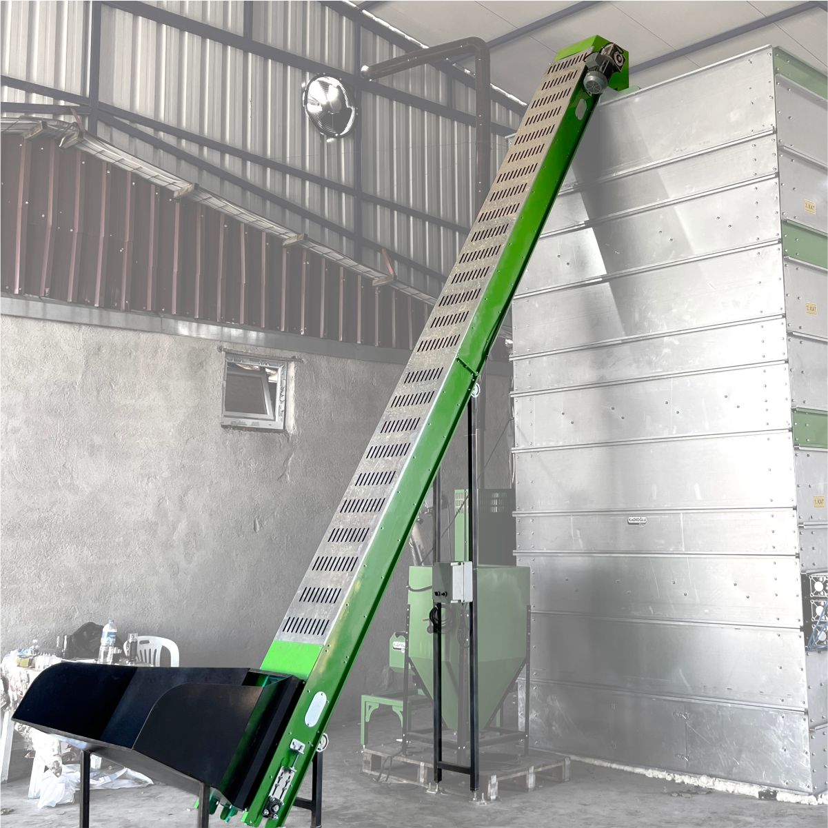Kadıoğlu MX25K-Katlı Kurutma Besleme Konveyörü, Kadıoğlu MX25 modeli olan kurutma makinelerini beslemede kullanılır. Konveyörün tasarımında yüksek kaliteli endüstriyel malzemeler kullanılmış olup, konveyör bandında PVC bant kullanılmıştır. PVC bant suya, neme karşı dayanıklı olması ve kullanılan yüksek kaliteli endüstriyel malzemeler sayesinde ürün uzun yıllar boyunca sorunsuzca çalıştırmasını sürdürmektedir.