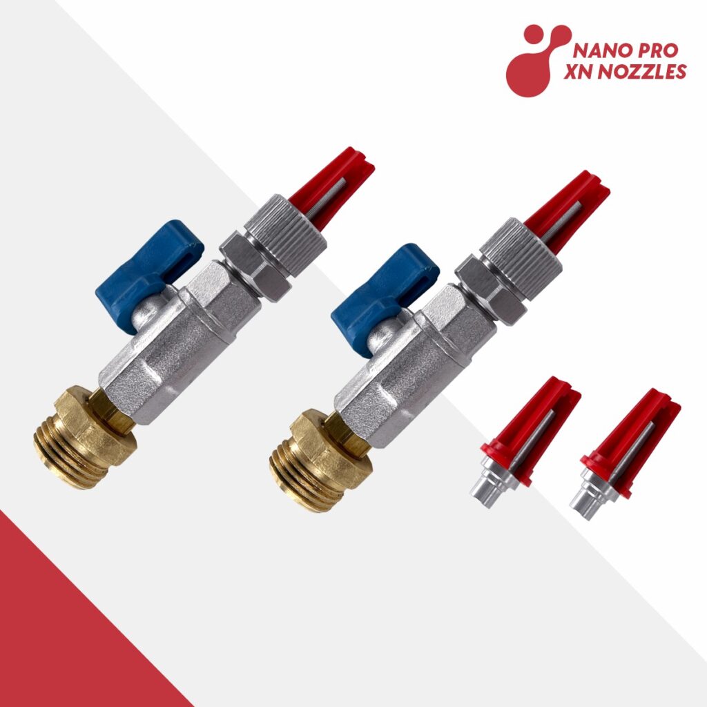 Nano İlaçlama Aparatı nozullarını, kendi ilaçlama makinesi ve aparatlarınızda kullanmak üzere ayrı olarak temin edebilirsiniz. Nano XN serisi özel üretim nozullar, uçuşmaya yol açan mikro damlacıklar oluşturmaz. Püskürtülen su, ince yağan bir yağmur gibi yere düşer. Bu nozullar, maksimum 16 km/saat hızla kullanılmak üzere uygundur; daha yüksek hızlarda püskürtme deseninde kaymalar olabilir.