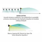 Tüm marka ve model kanatlı ilaçlama makinelerine montajı oldukça kolaydır. Nozulun çalışma basıncı 2-5 bar aralığındadır. Nano EXTRA XN1 Nozullar (Süne Memesi) su regülatörüyle set olarak teslim edilmektedir.