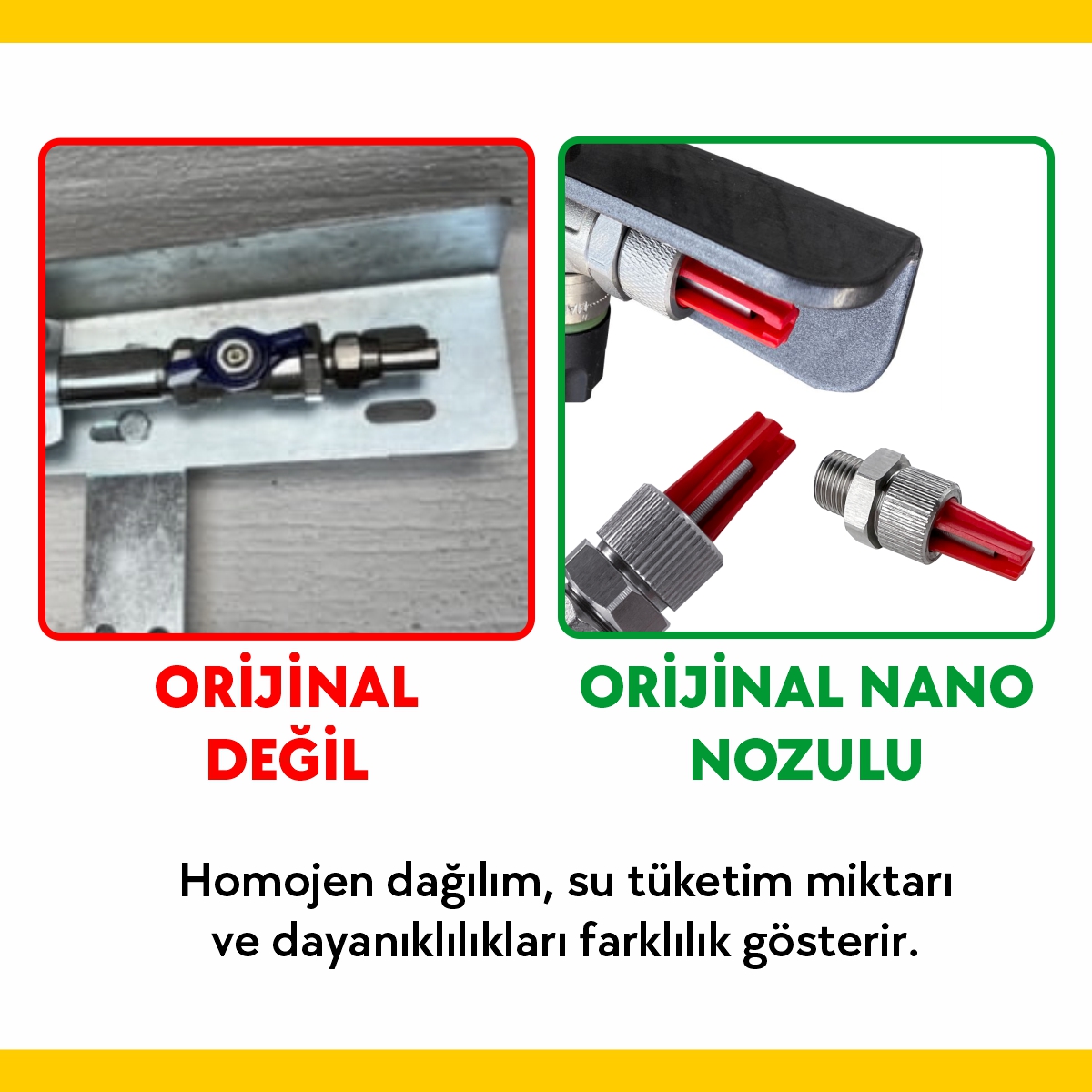 Nano ile 2,5 - 11 metre aralığında iş genişliğinde ot ilacı uygulamak mümkündür. 2 - 5 bar aralığında pompa basıncı ile kullanılan NANO Ot İlaçlama Aparatı ilacı tozlamadan atar. İlaç tıpkı çok ince yağan bir yağmur gibi iner ve homojen bir şekilde dağılır. Özel üretim nozullar ince damlacıkları keserek uçuşmayı engeller. Bu sayede ağaç yapraklarına temas etmeden ilaçlama yapmak mümkün olur.