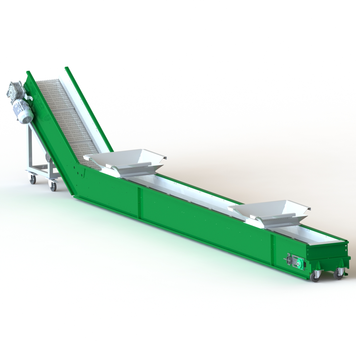 Konveyör; iki adet makinenin boşaltılmasına göre ve boşaltılan ürün, Kadıoğlu BOOST1900Z kodlu Boş Çürük Ceviz Ayırma Makinesi ’ne doğrudan yükleme yapabilecek şekilde dizayn edilmiştir.