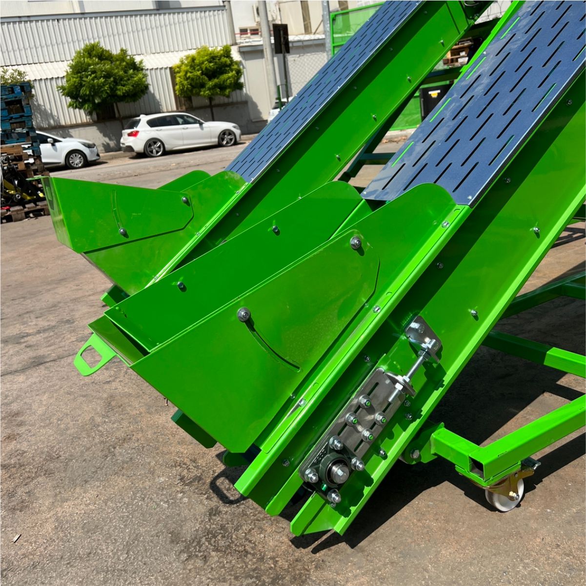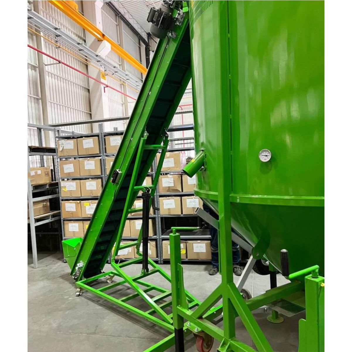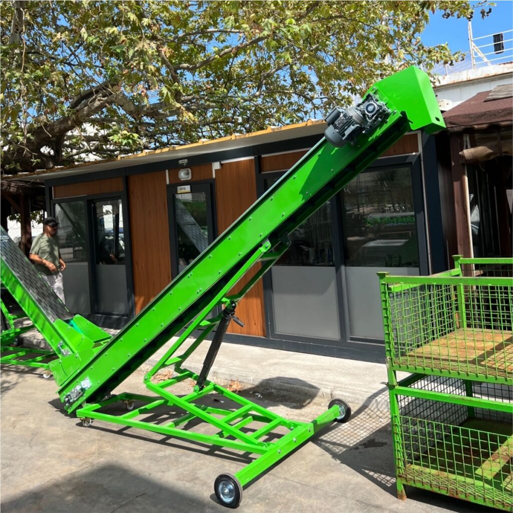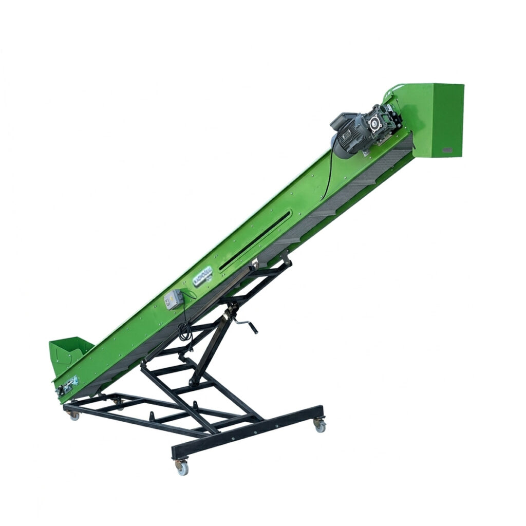 Kadıoğlu NUTMEC7K yükseklik ayarlı açılı konveyör bant ceviz, badem, fındık gibi kabuklu yemişlerin Kadıoğlu 5200, 5500 ve 6500 serisi kurutma makinelerine doldurulması ve tahliyesi için tasarlarlanmış ve uzun yıllar kullanılacak şekilde yüksek kaliteli endüstriyel malzemelerle üretilmiştir.