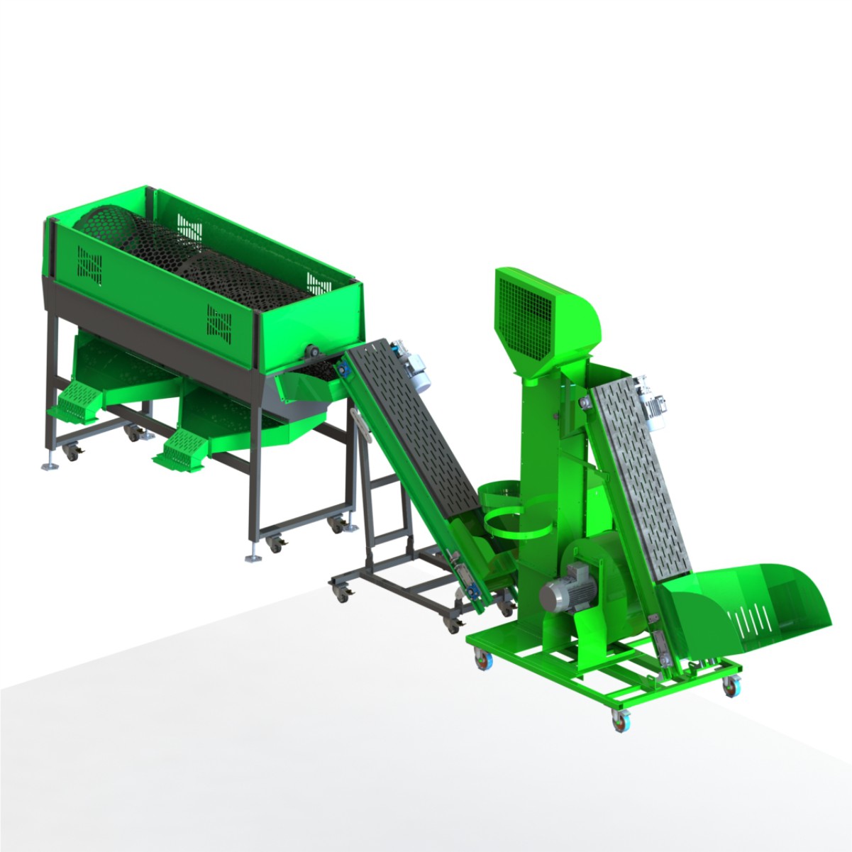 Kadıoğlu SET003 Boş – Çürük Ceviz Ayırma Makinesi (Üfleme), Ara Konveyör ve Boylama Makinesi Seti