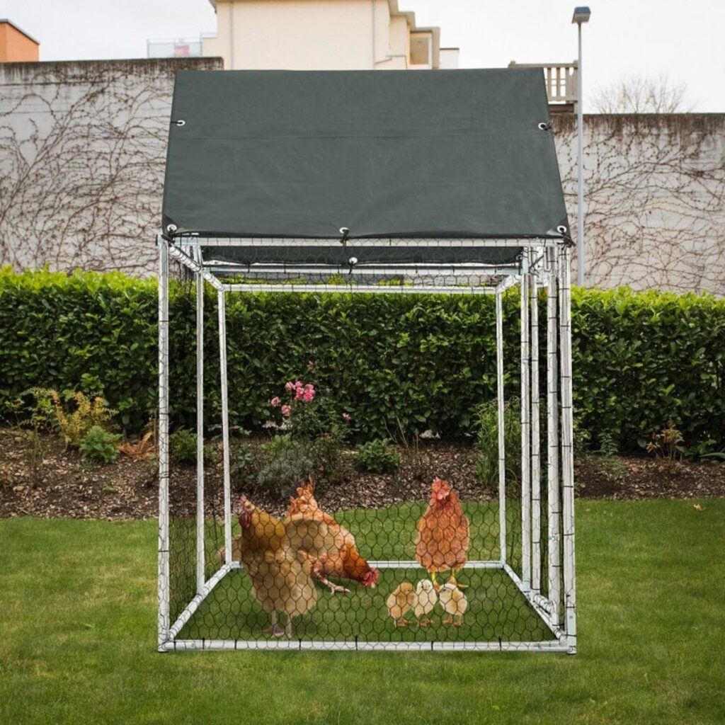 Uzun süreli dış mekân kullanımı için paslanmaya karşı dayanıklı konstrüksiyon. Su geçirmez ve UV dayanımlı örtüsü sayesinde kümes hayvanlarınızı yoğun güneş ışığından ve yağmurdan korur. Kolay kurulum özelliğine sahiptir ve başka bir yere kolayca taşınabilir.