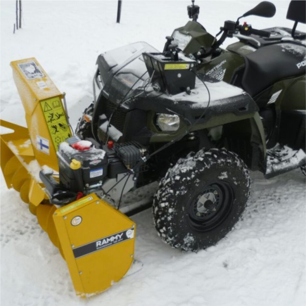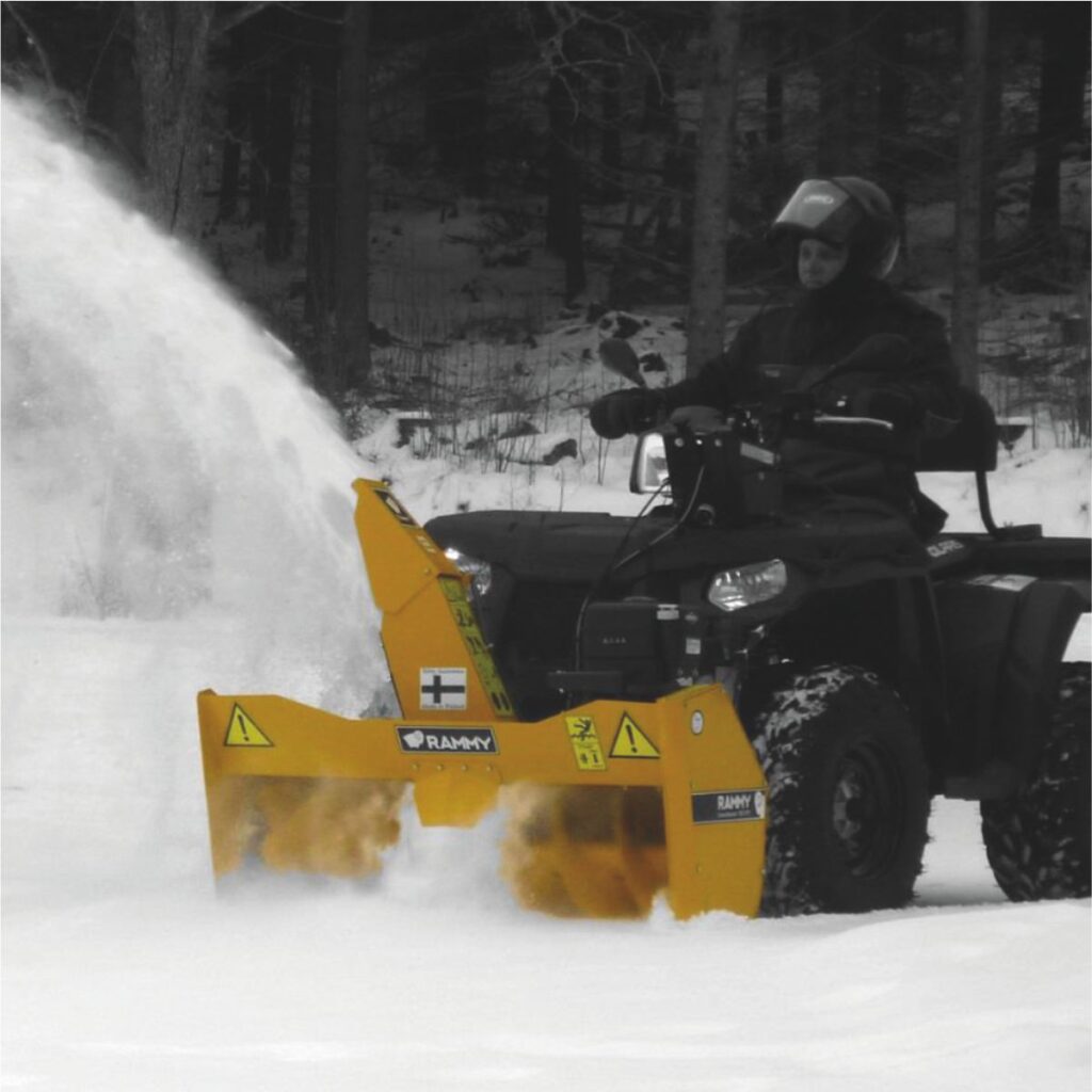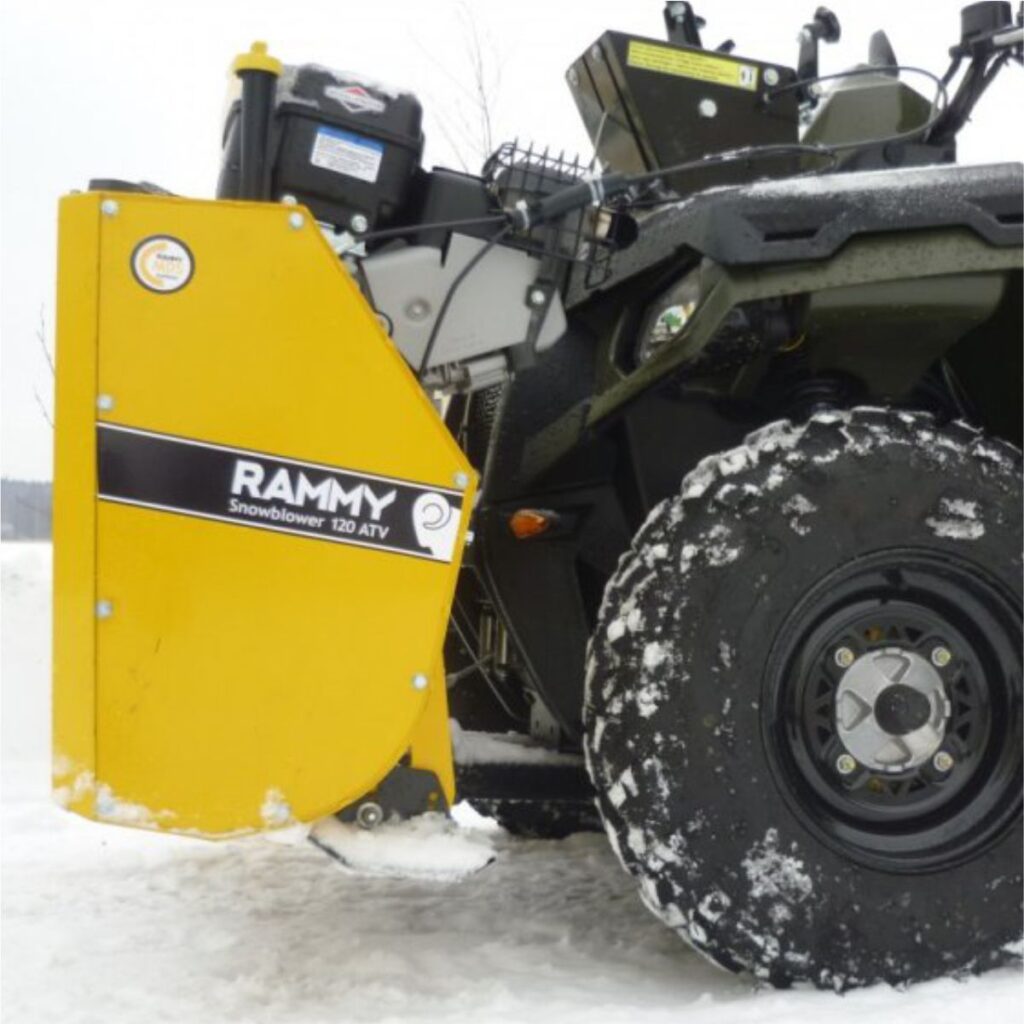 RAMMY 120 ATV tüm marka ve model 4x4 ATV motorlarına uyumlu kullanışlı ve güçlü bir kar püskürtme makinasıdır. Kar küreme yaparken ATV motorlarını zorlamamak için hafif ve kompakt tasarlanmış tamamen Finlandiya'da imal edilmiştir.