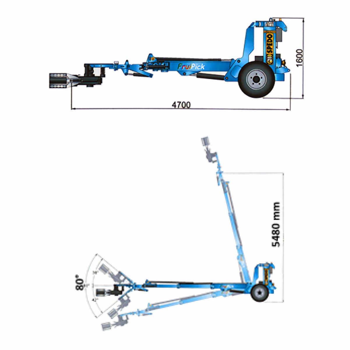 Profesyonel👍2.347.830,00 TLSpedo Fruipick-P Hasat Treyleri İçin Yüksek Kol Hidrolik Ağaç Silkeleme Makinesi (3 Parmak Penseli Model)
